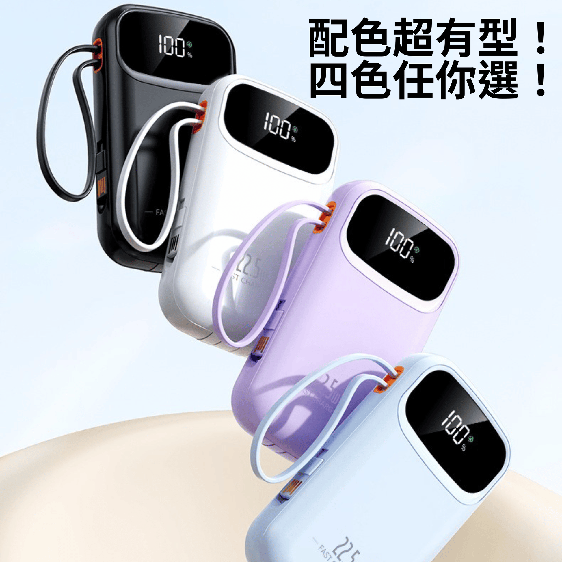 採用高規格電芯,充電效率高到你會嚇一跳。更棒的是,三種線材都直接整合在機身上,無論你拿 iPhone 還是各種 安卓手機,都不用再多帶線。