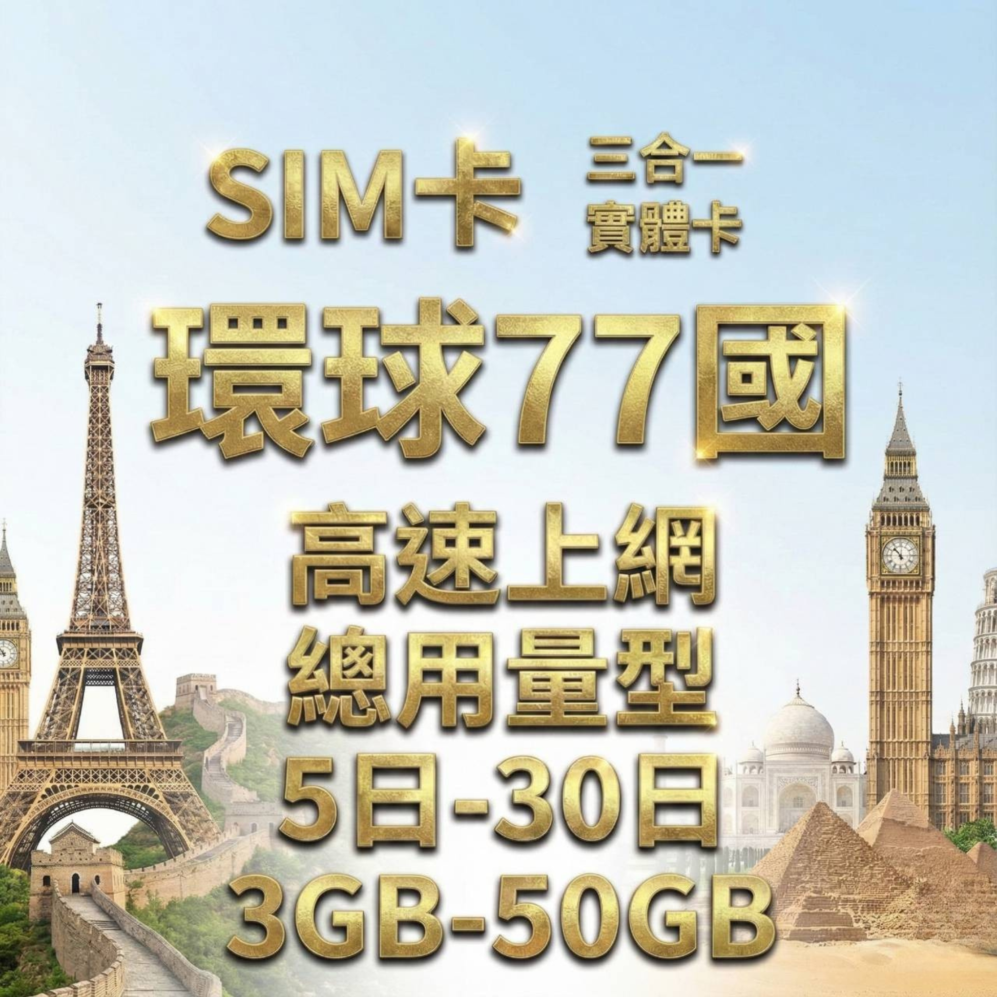 【實體卡】環球77國 跨國上網 總量型SIM卡 3-50GB 77個目的地:阿爾巴尼亞/愛爾蘭/愛沙尼亞/奧地利等77國 4G/5G -J